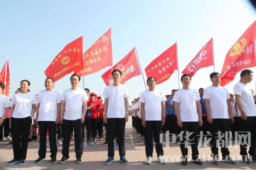 開幕式在喜慶歡快的熱場(chǎng)舞中開始,縣委副書記、政法委書記岳新坦致辭,參賽隊(duì)員代表宣誓,裁判員代表宣誓,最后,縣委書記馬明超宣布“文明淮陽·第二屆龍湖健步走活動(dòng)”開始。