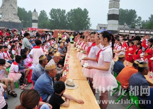 中華龍都網(wǎng)訊(周口報(bào)業(yè)全媒體記者 李瑞才 通訊員 胡洪濤 劉傳保/文圖)5月18日,鹿邑縣太清宮老子文化廣場(chǎng)內(nèi)歡聲笑語、歌舞飛揚(yáng),處處洋溢著歡樂祥和氣氛,來自鹿邑縣太清宮鎮(zhèn)一所小學(xué)的500多名師生在這里為太清敬老院的40多位老人操辦集體生日,用精彩的演出恭祝他們生日快樂!