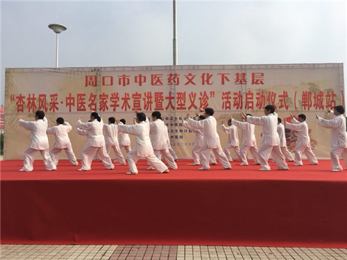 隨后,鄲城太極表演隊(duì)又為大家?guī)?lái)太極拳、太極劍等中醫(yī)養(yǎng)生保健操表演,精彩的表演贏得了現(xiàn)場(chǎng)群眾的陣陣喝彩。群眾的高度關(guān)注和積極參與,展現(xiàn)了鄲城人民重視中醫(yī)文化、注重養(yǎng)生保健的精神風(fēng)貌。