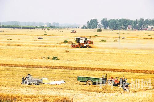 現(xiàn)在我市麥?zhǔn)找呀猜暋J斋@時,縱橫交錯的麥田一片金黃,把鄉(xiāng)村裝點(diǎn)得格外美麗。收割機(jī)在麥田中穿梭,陣風(fēng)吹過,麥浪隨風(fēng)起舞,猶如一幅田園畫卷。呂耀光 攝
