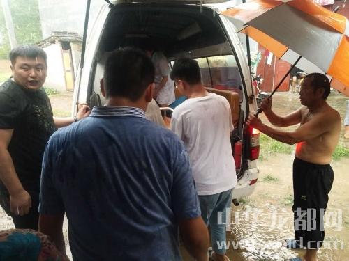 下午五點五十五分,鄲城縣第二人民醫(yī)院救護車到達現(xiàn)場。在經(jīng)過醫(yī)護人員的檢查后,建議送到醫(yī)院進一步治療。此時,大雨如瓢潑一般,幫扶隊員羅明飛等人不顧大雨傾盆,抬擔架,打雨傘,將病人王洪花抬上了救護車,羅明飛等人全身的衣服和鞋襪全部濕透。