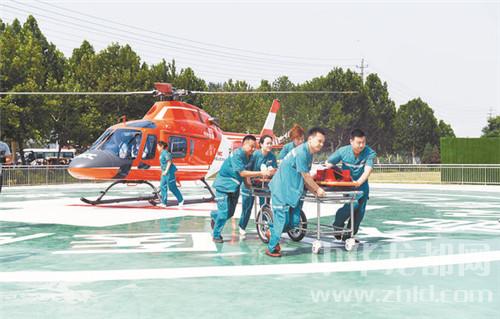 中華龍都網(wǎng)訊 6月28日上午,全市“防災(zāi)減災(zāi)立體救援”航空醫(yī)療救援啟動儀式在周口協(xié)和骨科醫(yī)院啟動。空中緊急救援一小時內(nèi)全省到達(dá)。圖為直升機(jī)救援演練現(xiàn)場。