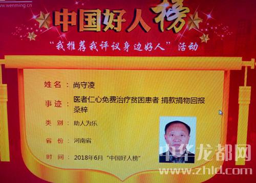 6月29日,記者從太康縣文明辦獲悉,太康縣常營鎮(zhèn)沙莊村尚守凌醫(yī)者仁心,20年累計捐款捐物數(shù)500余萬元回報桑梓,光榮入選6月份助人為樂類中國好人榜。目前,該縣入選中國好人榜人數(shù)已達38人。