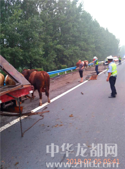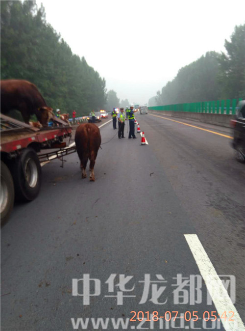 中華龍都網訊(周口報業(yè)全媒體記者 姬慧洋 通訊員 劉杰 文/圖)“在大廣高速2025公里西半幅附近發(fā)生一起單方事故,幾十頭牛散落在路面,請求處警?!?月5日5時許,周口市公安局交通管理支隊高速二大隊扶溝中隊接到110指令稱。
