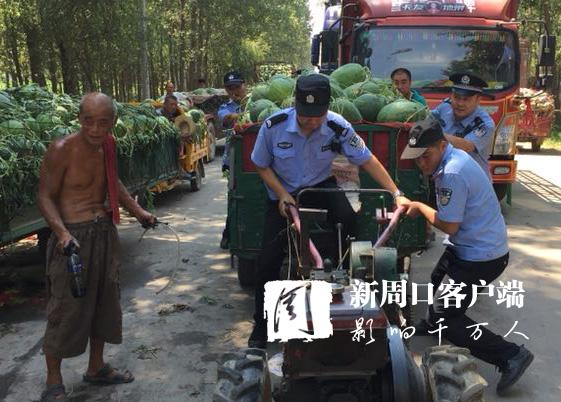 三伏天里,西瓜是不可或缺的消暑水果,但一些瓜農(nóng)在出售西瓜時(shí)卻往往忽視了交通秩序,因車輛停放不當(dāng)造成交通擁堵。扶溝縣公安局江村派出所民警冒著酷暑,加強(qiáng)轄區(qū)西瓜市場巡邏,及時(shí)疏導(dǎo)擁堵路段交通。圖為7月18日,民警正在疏導(dǎo)西瓜市場擁堵車輛。
