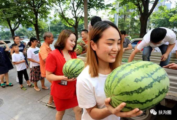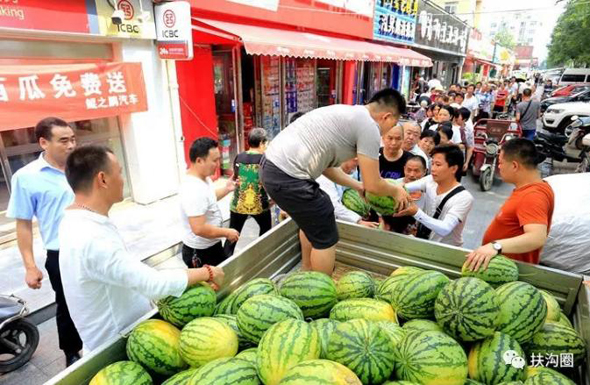 7月18日,《人民日報》客戶端播發(fā)了“小伙購十萬斤西瓜免費送 市民排長隊”的一條新聞,瞬間刷屏朋友圈,一天閱讀量就突破100萬人次,加上騰訊新聞、人民圖片截至19日發(fā)稿時閱讀量已達一百五十萬人次,評論13000多條,人們都在稱贊咱扶溝小伙宋鐵托的善舉,被網(wǎng)友稱他為“愛心西瓜哥”。