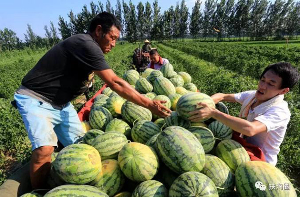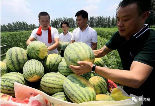 為了保證西瓜的品質(zhì),讓市民吃的放心,同時也是為扶溝西瓜揚名,宋鐵托帶著員工親自到瓜田收購西瓜。