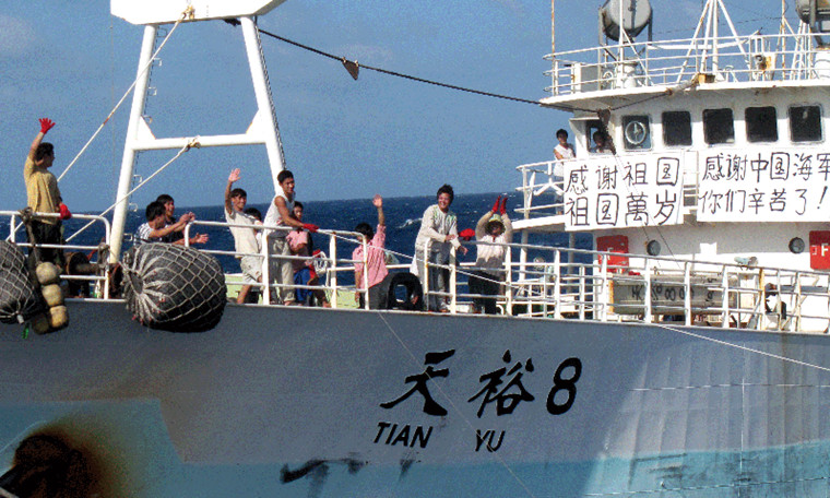 2009年2月5日,正執(zhí)行伴隨護航任務(wù)的海口艦接到上級命令,到索馬里霍比亞附近海域,接護“天裕8號”漁船。