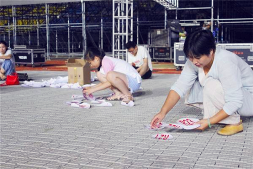 在場地的一側(cè),幾名工作人員正在全神貫注地整理一大堆號(hào)碼貼,“省運(yùn)會(huì)是全省的體育盛會(huì),能有機(jī)會(huì)參與這樣的運(yùn)動(dòng)會(huì)是一種榮幸,我們準(zhǔn)確地說應(yīng)該算是志愿者,因?yàn)槲覀儗儆诹x務(wù)勞動(dòng)。”其中一名女士說,這是細(xì)活,急不得,號(hào)碼非常多,英文中的26個(gè)字母,分大小寫,然后還和阿拉伯?dāng)?shù)字進(jìn)行組合,她們的工作就是要把這些號(hào)碼捋順,防止出現(xiàn)差錯(cuò)。記者注意到,場地的四周放置了很多音響,工作人員正在對(duì)播音設(shè)備進(jìn)行調(diào)試,雖然還處于調(diào)試階段,但是聽起來已經(jīng)非常震撼。在場地旁邊,部分表演道具也整齊擺放著,看到這些精致的道具,開幕式當(dāng)天的文藝表演精彩程度可見一斑。