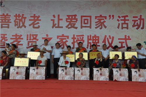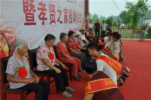 大會(huì)開始之前,來(lái)自該鄉(xiāng)20個(gè)行政村的廣場(chǎng)舞代表隊(duì)、戲曲代表隊(duì)、嗩吶代表隊(duì)先后出場(chǎng),訾秀玲一曲《黃土高坡》贏得全場(chǎng)觀眾雷鳴般掌聲。緊接著,好兒子、好媳婦代表上臺(tái)為自己的父母磕了3個(gè)響頭,以表達(dá)對(duì)父母養(yǎng)育之恩的感激之情,老人們臉上流露出激動(dòng)和幸福的淚水,現(xiàn)場(chǎng)掌聲經(jīng)久不息??h領(lǐng)導(dǎo)在主席臺(tái)上為36個(gè)孝賢之家授牌,并向獲獎(jiǎng)?wù)弑硎咀YR。據(jù)介紹,該鄉(xiāng)自開展孝善敬老接老人回家活動(dòng)以來(lái),已有200多名獨(dú)居老人被兒子、媳婦接回家居住。為了表彰接老人回家的好兒子、好媳婦和孝賢之家,該鄉(xiāng)組織、策劃了這次大型活動(dòng)。