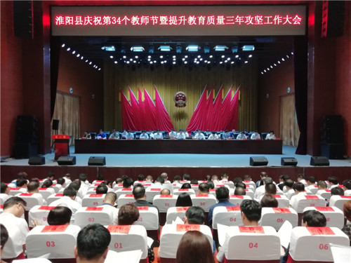 9月3日,在第34個教師節(jié)來臨之際,淮陽縣慶祝第34個教師節(jié)暨提升教育質(zhì)量三年攻堅(jiān)工作大會召開。會議主要目的是總結(jié)一年來教育工作取得的成績,對教育戰(zhàn)線涌現(xiàn)出的“優(yōu)秀校長”“師德標(biāo)兵”“優(yōu)秀班主任”“優(yōu)秀教師”進(jìn)行表彰,并對全縣提升教育質(zhì)量三年攻堅(jiān)工作進(jìn)行全面動員部署。