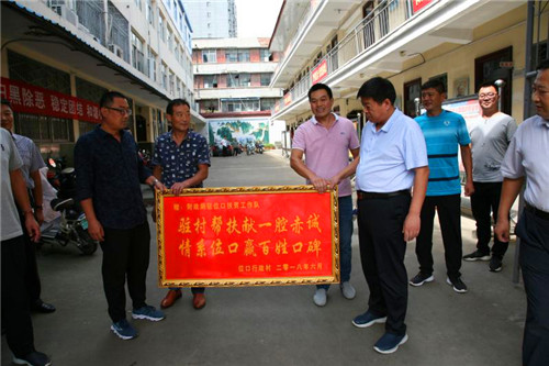 丁喜三代表財(cái)政局黨組對位口村民為財(cái)政局駐村工作隊(duì)贈送錦旗和牌匾表示感謝。稱縣財(cái)政局在縣委縣政府正確領(lǐng)導(dǎo)下,對張店鎮(zhèn)位口行政村進(jìn)行駐村幫扶,三年來的駐村工作取得了很大的成績,也存在很多不足,希望位口村廣大群眾對財(cái)政局的駐村扶貧工作多提寶貴意見,同時對新駐村隊(duì)員提出高的要求,財(cái)政局和位口村干部群眾攜手共同把脫貧攻堅(jiān)工作做好,確保不拖全縣的后腿,在奔小康的路上不落下一人。