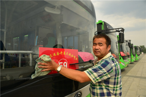隨著省第十三屆運(yùn)動會開幕式臨近,近日,市公交總公司接送演職人員的公交車已經(jīng)增至近百輛,這些公交車的司機(jī)每天都要工作到午夜2時(shí)許。據(jù)悉,從今年4月份省運(yùn)會先期比賽項(xiàng)目開賽以來,市公交總公司已為省運(yùn)會出動公交車2800臺班,中心城區(qū)公交候車亭提升改造工程也正在快速推進(jìn)中。圖為市公交二公司的劉師傅利用閑暇時(shí)間擦車。②5記者 梁照曾 攝