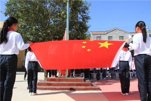 這是一面嶄新的五星紅旗,在藍(lán)天和驕陽(yáng)的映襯下鮮艷奪目,熠熠生輝。國(guó)慶前夕,周口市淮陽(yáng)縣白樓鎮(zhèn)大李小學(xué),孩子們聚集在一起,戴著同樣鮮艷的紅領(lǐng)巾,參加一場(chǎng)莊重的升旗儀式。在他們看來(lái),這是一種愛國(guó)情懷的表達(dá),也是對(duì)祖國(guó)母親最好的祝福。