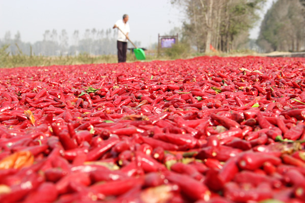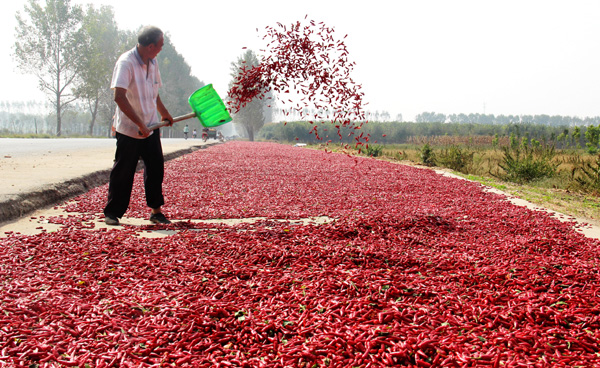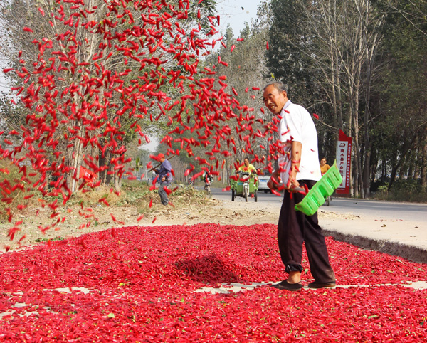 近年來,商水縣郝崗鎮(zhèn)大力實施辣椒產業(yè)扶貧,通過黨員干部帶動、結對貧困戶扶持發(fā)展,種植萬畝以上小辣椒,實現畝效益3000元以上,促進了群眾增收致富。圖為昨日上午,該鎮(zhèn)西洄行政村農民正在晾曬小辣椒。