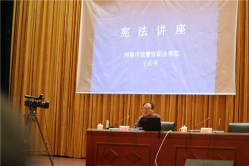 會上,省司法警官職業(yè)學(xué)院法律系主任王治荃、法學(xué)碩士孫啟河兩位教授分別從憲法的時代背景、基本內(nèi)涵、精神實質(zhì)和重要意義及依法行政的基本含義、本質(zhì)和全面推進依法行政的奮斗目標等做了精彩輔導(dǎo)。