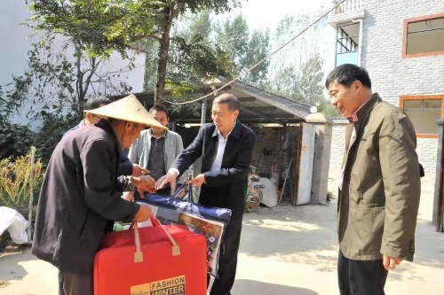 為進一步弘揚中華民族敬老、愛老、助老的優(yōu)良傳統(tǒng)美德,讓結(jié)隊幫扶村——太康縣王集鄉(xiāng)李小橋行政村90歲及以上老人過一個溫馨又和諧的重陽佳節(jié),10月12日,周口市稅務(wù)局黨委委員、副局長徐平烽,黨委委員、總會計師李霞,黨委委員、總經(jīng)濟師張振祥等在對全村9名高齡老人進行了走訪慰問,為老人們送上節(jié)日的祝福和價值近2000元的慰問品。