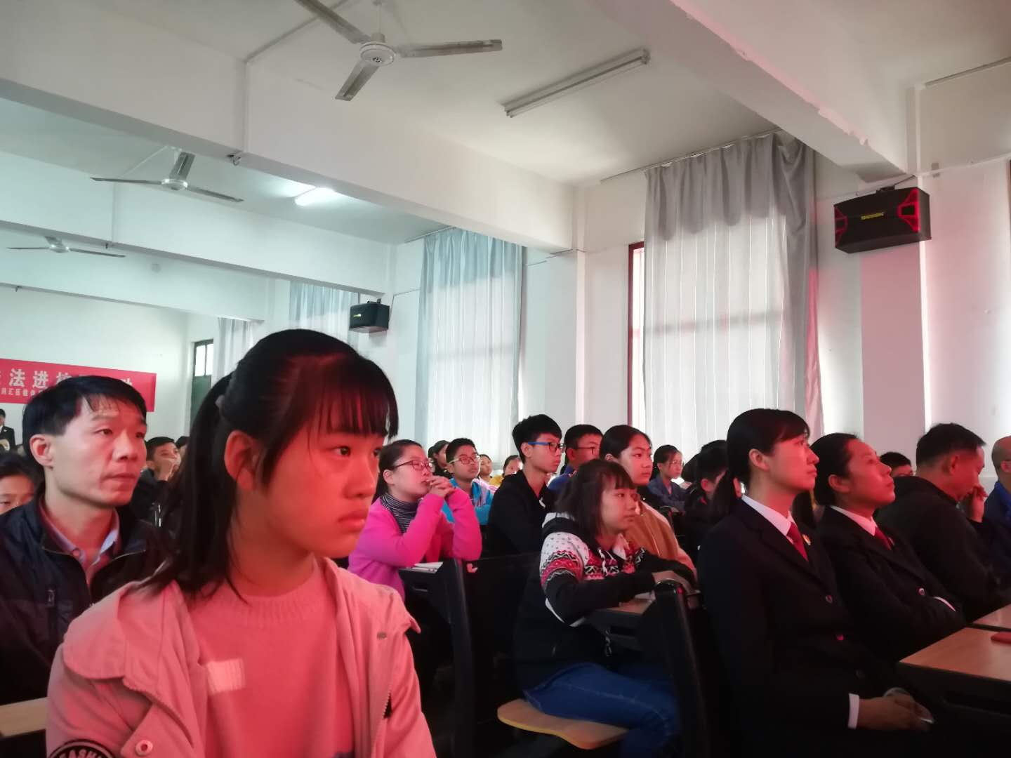 課堂上,檢察官通過播放宣傳片、做報(bào)告等形式,深入淺出地分析了校園欺凌的表現(xiàn)形式、危害以及如何面對校園欺凌等知識,讓同學(xué)們明白校園欺凌行為的惡劣后果,提醒同學(xué)們知法、懂法、守法,用正確的方法保護(hù)自己。