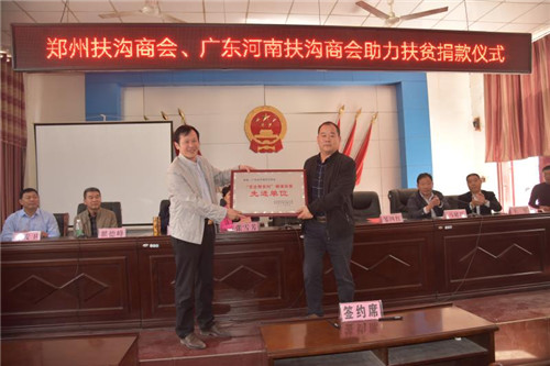 致富思源,反哺故里;捐資幫扶,回報(bào)家鄉(xiāng)。10月19日上午,鄭州扶溝商會會長翟德峰、廣東省河南扶溝商會會長鄒四紅回到扶溝,為家鄉(xiāng)脫貧攻堅(jiān)事業(yè)不僅“雪中送炭”,送來捐助的善款,而且“錦上添花”,與貧困村簽訂了結(jié)對幫扶協(xié)議。