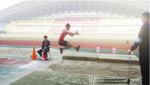 10月24日上午,河南省第七屆殘疾人運(yùn)動(dòng)會(huì)跳遠(yuǎn)比賽在市體育中心體育場(chǎng)進(jìn)行。在跳遠(yuǎn)賽場(chǎng),參賽選手完成每一次跳躍后,都會(huì)與裁判員進(jìn)行溝通,認(rèn)真對(duì)待比賽。 ②8 記者 牛思光 攝