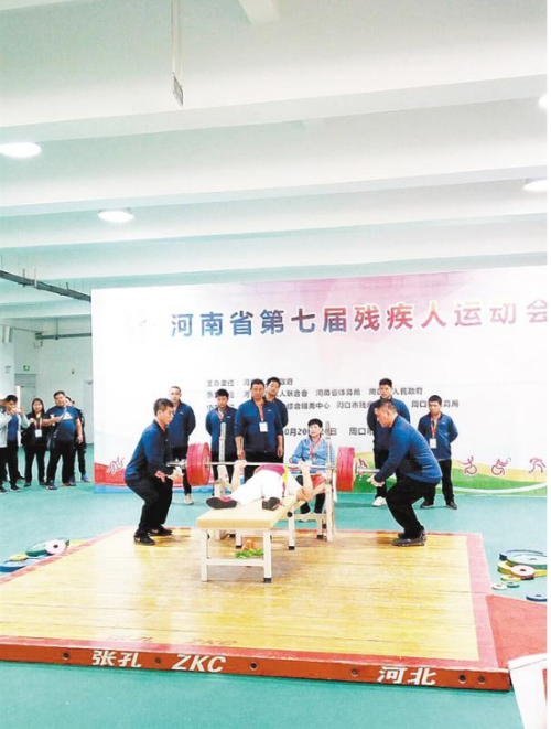 10月24日下午,在河南省第七屆殘疾人運(yùn)動(dòng)會(huì)男子舉重65公斤級(jí)比賽中,南陽(yáng)選手范天增以185公斤的成績(jī)強(qiáng)勢(shì)奪冠,遠(yuǎn)高于第二名信陽(yáng)選手湯孝虎95公斤的成績(jī)。②8記者 張志新 攝