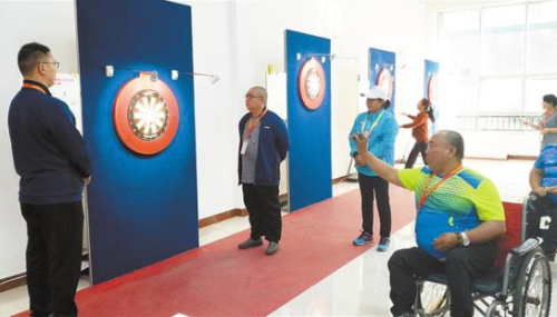 10月24日下午,河南省第七屆殘疾人運(yùn)動(dòng)會(huì)飛鏢項(xiàng)目坐姿組比賽在市體育中心老年館進(jìn)行。參賽選手在認(rèn)真比賽的同時(shí),也會(huì)在比賽間隙放松心情,相互分享各自的心得,享受比賽的過(guò)程。②8 記者 牛思光 攝