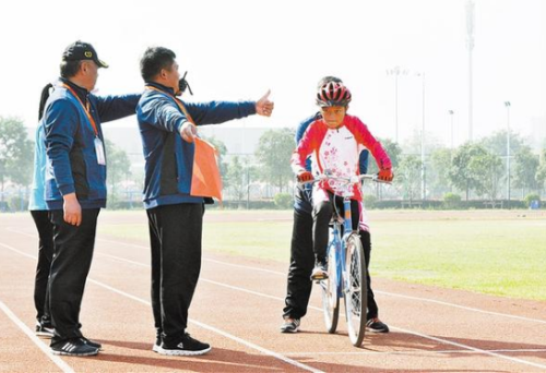 10月24日上午,河南省第七屆殘疾人運(yùn)動(dòng)會(huì)自行車比賽女子聽力組5公里個(gè)人計(jì)時(shí)賽進(jìn)入決賽。周口小將葛雨露,在發(fā)令員、手語(yǔ)工作人員的示意下展開角逐。②8記者 梁照曾 攝