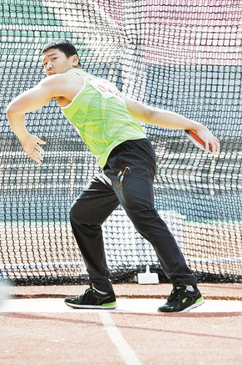 10月24日上午,河南省第七屆殘疾人運(yùn)動(dòng)會(huì)田徑項(xiàng)目中的擲鐵餅比賽正進(jìn)行得如火如荼。圓圓的鐵餅從運(yùn)動(dòng)員的手中拋出,劃過(guò)美麗的天空,落在草地上。該項(xiàng)運(yùn)動(dòng)展示了運(yùn)動(dòng)員陽(yáng)剛、拼搏的一面。圖為比賽現(xiàn)場(chǎng)。②8 記者 梁照曾 攝
