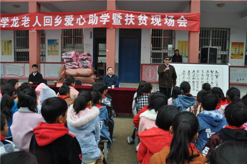 “讓我們用熱烈的掌聲,向于學(xué)龍老人表示崇高的敬意?!?1月5日上午,商水縣黃寨鎮(zhèn)埠口小學(xué)愛心助學(xué)現(xiàn)場,該鎮(zhèn)黨委書記朱宏偉和全校師生一起,向85歲高齡的于學(xué)龍表示感謝。當(dāng)天上午,原建設(shè)銀行北京分行總經(jīng)濟(jì)師于學(xué)龍先生輾轉(zhuǎn)千里回到故鄉(xiāng),用實際行動助力家鄉(xiāng)脫貧攻堅,為全校370多名孩子送去書包、書法作品等愛心禮物。