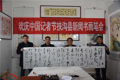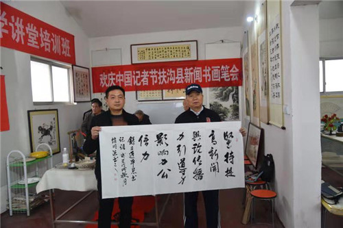 筆墨寫春秋,重彩頌佳節(jié)。為慶祝第19個中國記者節(jié),在扶溝縣的張坡詩詞名人書畫館,來自省書法家協(xié)會的書法家與當?shù)匦侣勑麄鞑块T的書畫愛好者們齊聚一堂,以舉行書畫筆會的形式向新聞媒體人慶賀節(jié)日。