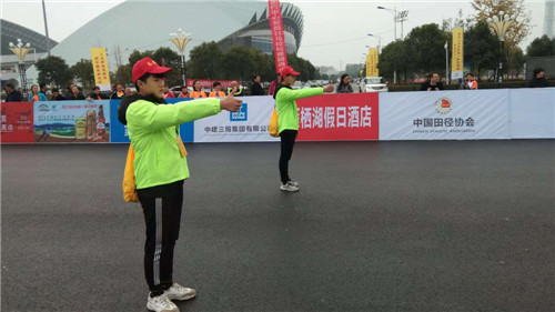 11月18日,在2018周口馬拉松暨善跑中國周口站現場,一個個身穿統(tǒng)一服裝的志愿者活躍在賽道之上,他們或給選手舉路線指示牌,或伸出大拇指給路過選手一個大大的“贊”,成為賽場內外一道靚麗的風景。