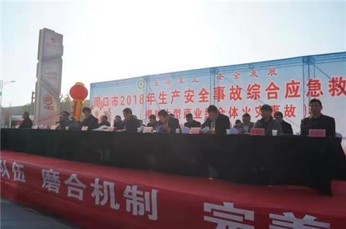 11月23日上午,周口市大型商業(yè)綜合體火災(zāi)事故應(yīng)急救援綜合演練活動(dòng)在淮陽(yáng)縣天鴻世貿(mào)商場(chǎng)舉行。市政府副秘書(shū)長(zhǎng)馮干敏,市安委會(huì)副主任、安監(jiān)局局長(zhǎng)胡恩勇,市消防支隊(duì)副支隊(duì)長(zhǎng)李華兵,淮陽(yáng)縣委書(shū)記馬明超,縣長(zhǎng)王毅,以及各縣(市)區(qū)主管安全工作的政府領(lǐng)導(dǎo)出席演練觀摩活動(dòng)?;搓?yáng)縣政府應(yīng)急辦、消防大隊(duì)、安監(jiān)局、公安局、衛(wèi)計(jì)委、環(huán)保局、住建局、天鴻世貿(mào)有限公司等20余家單位300余人參與演練活動(dòng)。