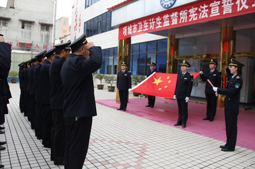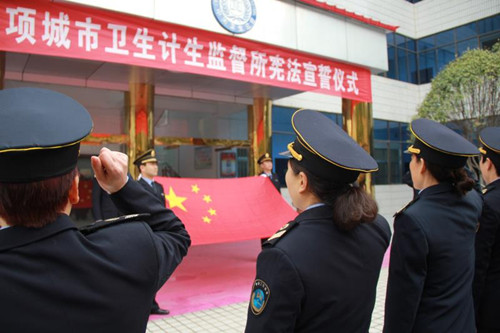 12月4日在我國第五個國家憲法日來臨之際,項城市衛(wèi)生計生監(jiān)督所舉行憲法宣誓儀式,旨在引導全體衛(wèi)生計生監(jiān)督人員牢固樹立憲法至上意識,增強憲法觀念,自覺維護憲法尊嚴。