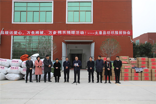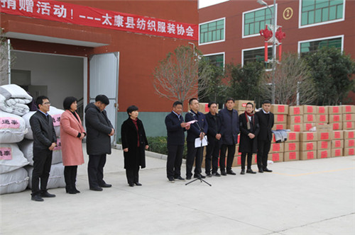 太康縣委副書記、政法委書記王程清在致辭中指出,扶貧濟(jì)困、樂善好施是中華民族的傳統(tǒng)美德,通泰紡織、銀鑫棉業(yè)、萬(wàn)利源棉業(yè)等縣紡織協(xié)會(huì)成員單位通過捐款捐物、產(chǎn)業(yè)幫扶、就業(yè)幫扶、基礎(chǔ)設(shè)施幫扶等多種形式投入到脫貧攻堅(jiān)行動(dòng)中,幫助貧困群眾發(fā)展生產(chǎn)、改善生活條件、擺脫疾病困擾、完成學(xué)業(yè)夢(mèng)想、為貧困群眾早日脫貧貢獻(xiàn)出自己的一份力量,并為他們捐贈(zèng)棉衣棉被的善舉表示感謝。