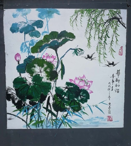 兩幅墻體彩繪,使普通而老舊的墻壁變成了一道靚麗的“文化風景”,以一種清新、典雅的形式,扮靚著城市。