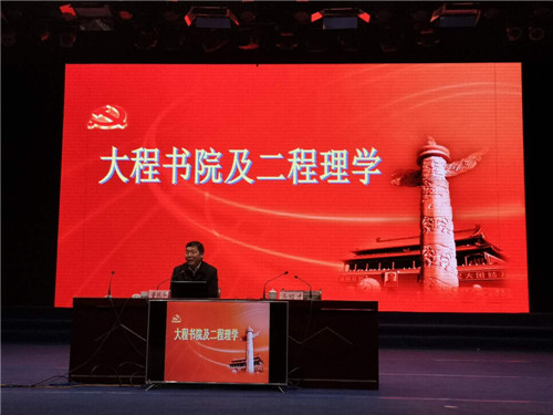 會前,與會人員首先觀看了扶溝文化宣傳片《人文扶溝》。會上,中共中央黨校哲學教研部副主任、博士生導師董振華教授以《大程書院及二程理學》為題,從大程書院及二程其人其事、二程思想的歷史地位、二程理學的核心要義、二程理學的當代價值等四個方面,通過深入淺出、引人入勝的講解,把二程文化的起源發(fā)展脈絡清晰明了地展現(xiàn)在聽眾面前。
