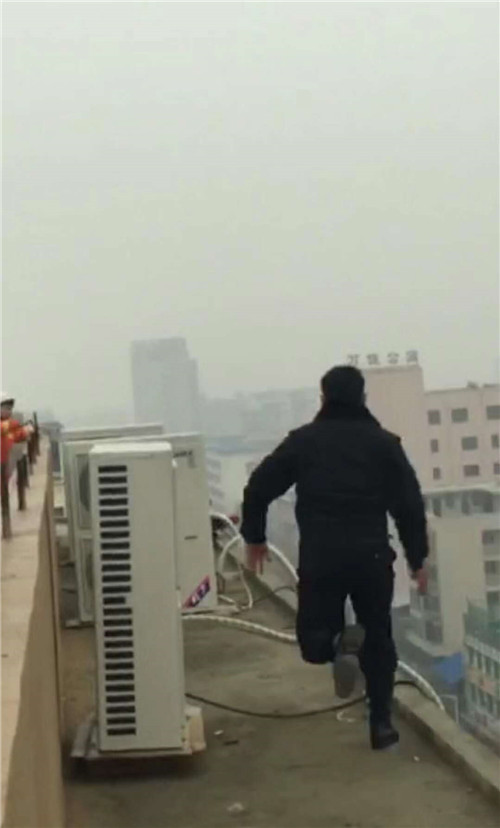 12月25日10時20分,鄲城縣公安局北關(guān)派出所接110指揮中心指令:在縣城人民路電影院十字路口西南角一棟10層樓的樓頂,一名女子要跳樓。接警后,北關(guān)派出所副所長李振、民警焦騰飛和縣消防大隊消防員不顧自身危險,通過左右迂回、“飛檐走壁”將輕生女安全救下。