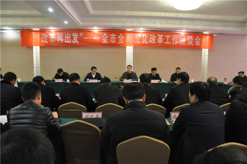 1月9日,“改革再出發(fā)”— 全市全面深化改革工作座談會(huì)在商水召開(kāi)。會(huì)議對(duì)40年來(lái)全市改革開(kāi)放取得的顯著成績(jī)和變化進(jìn)行暢談式總結(jié)回顧,對(duì)今后一個(gè)時(shí)期深化改革工作進(jìn)行相互啟發(fā)式思考謀劃。