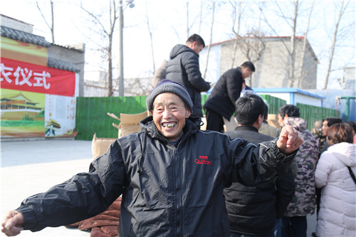 此次捐贈(zèng),共捐獻(xiàn)400多套棉襖。穿上嶄新的棉衣,87歲的李如意笑得合不攏嘴,他穿上新棉襖在廣場前轉(zhuǎn)了好幾圈,高興得像個(gè)等待過年的孩子。