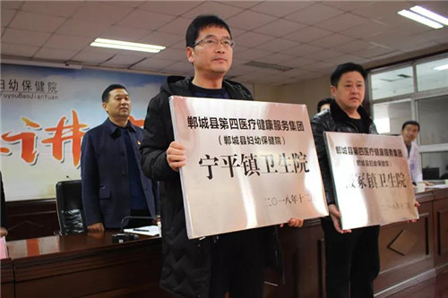 1月30日,鄲城縣第四醫(yī)療健康服務(wù)集團(tuán)揭牌暨成員單位授牌儀式,在該集團(tuán)牽頭醫(yī)院鄲城縣婦幼保健院會議室舉行??h衛(wèi)計(jì)委黨組書記、主任付登霄,副主任黃玉珍、劉清俊,辦公室主任楊光貞,鄲城縣第四醫(yī)療健康服務(wù)集團(tuán)理事長、縣婦幼保健院院長亢國良,副院長楊軍、王斌出席儀式,并為第四醫(yī)療健康服務(wù)集團(tuán)揭牌,為第四醫(yī)療健康服務(wù)集團(tuán)其他成員單位授牌。黃玉珍主持儀式。