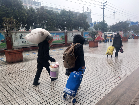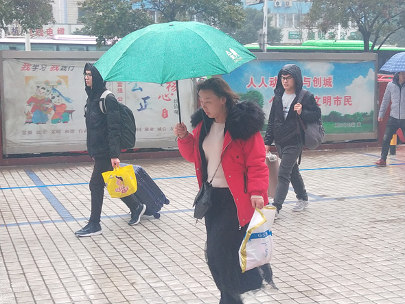 1月30日,農(nóng)歷臘月二十五,上午下起了大雨,在周口汽車客運(yùn)總站,一些從外地返鄉(xiāng)的乘客加快了回家過年的步伐。