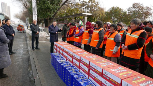 慰問(wèn)中,皇甫立新、劉國(guó)慶一行首先來(lái)到新區(qū)“三公開(kāi)”廣場(chǎng),慰問(wèn)堅(jiān)守一線的環(huán)衛(wèi)工人,向他們致以新春的祝福,并對(duì)他們?cè)谶^(guò)去一年里付出的辛勤勞動(dòng)表示衷心感謝?;矢α⑿轮赋觯荒陙?lái),環(huán)衛(wèi)工人們起早貪黑、兢兢業(yè)業(yè),為改善居民生活環(huán)境和提升城市形象付出很多心血和汗水,取得了良好效果,城區(qū)環(huán)境和城市面貌有了很大改善,得到了社會(huì)各界的一致好評(píng),希望環(huán)衛(wèi)工人們?cè)诖汗?jié)期間繼續(xù)發(fā)揚(yáng)奉獻(xiàn)精神,把縣城衛(wèi)生打造的更加干凈、整潔,讓廣大市民和回家過(guò)年的群眾能深刻感受到縣城環(huán)境的新變化,過(guò)一個(gè)干凈舒適愉快的春節(jié)。