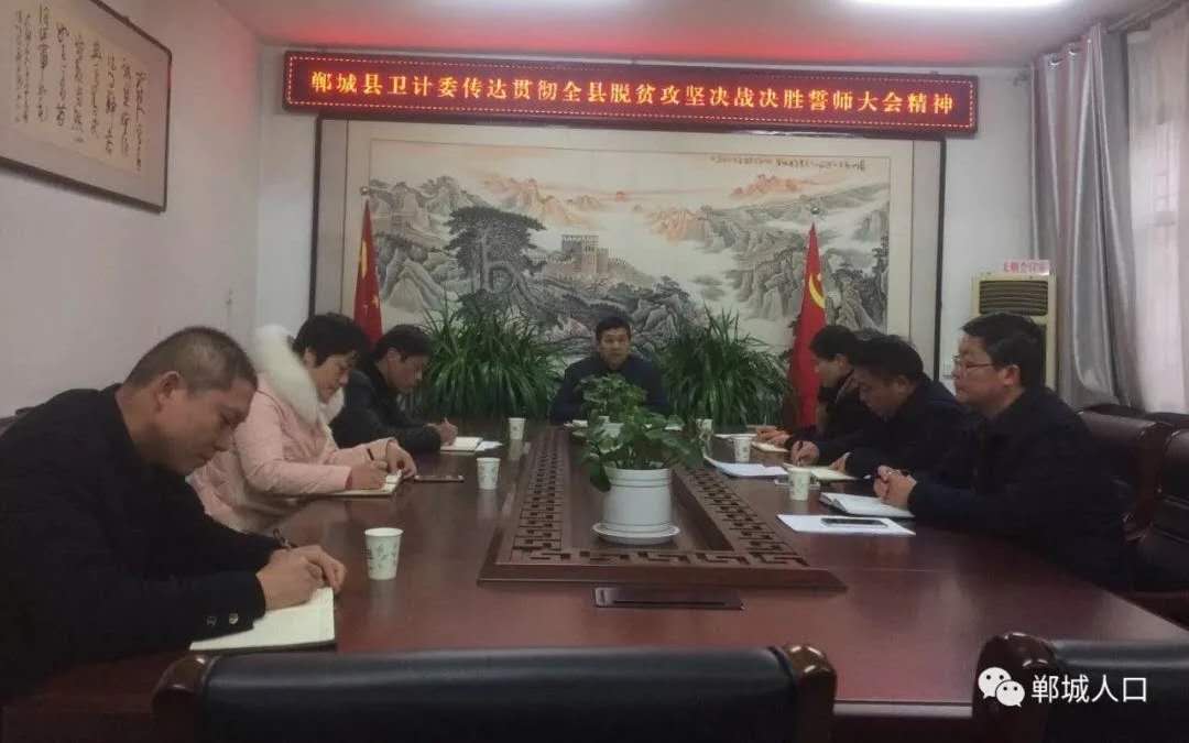 2月13日,鄲城縣脫貧摘帽決戰(zhàn)決勝誓師大會(huì)在縣人民會(huì)堂隆重召開。下午,縣衛(wèi)計(jì)委及時(shí)組織召開了委全體班子成員工作會(huì),會(huì)議認(rèn)真?zhèn)鬟_(dá)學(xué)習(xí)了全縣脫貧摘帽決戰(zhàn)決勝誓師大會(huì)精神,重點(diǎn)學(xué)習(xí)了縣委書記羅文閣、縣長李全林等領(lǐng)導(dǎo)在大會(huì)上的重要講話精神,同時(shí)對全縣衛(wèi)生計(jì)生系統(tǒng)2019年脫貧攻堅(jiān)重點(diǎn)工作任務(wù)作了統(tǒng)一安排部署。