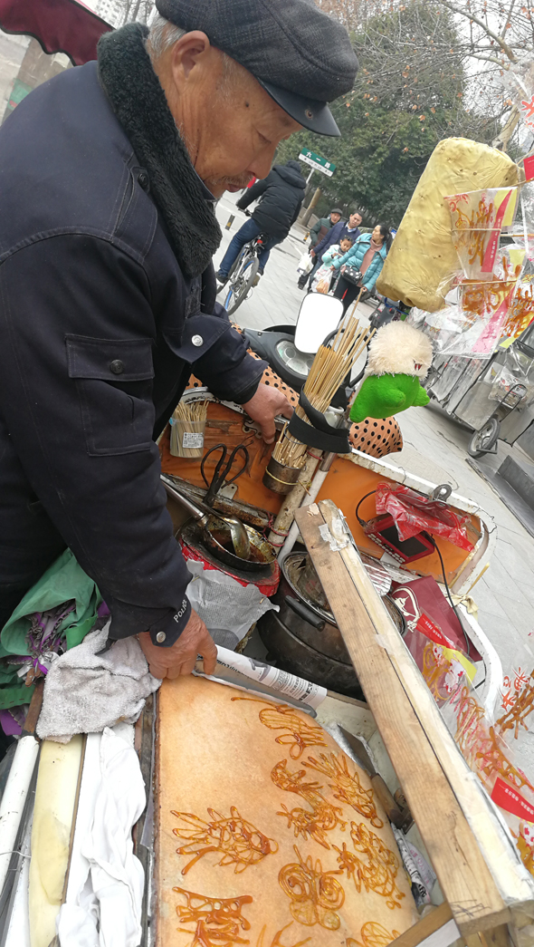 以糖稀為原料制作一幅糖畫,只需要1分多鐘。昨日,記者在中心城區(qū)七一路與六一路交叉口附近,目睹了閆先生制作糖畫的過程。閆先生以糖稀為原料制作的小動物惟妙惟肖,還有“?!薄皭邸钡茸帧iZ先生告訴記者,他是周口本地人,制作糖畫已30多年。記者 關(guān)秋麗 攝