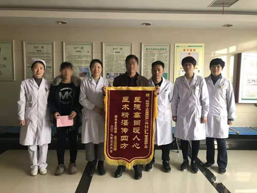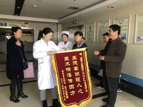 術(shù)后患者恢復(fù)良好,康復(fù)出院后,3月6日上午,患者和丈夫一起來(lái)到醫(yī)院,向住院期間給予了精準(zhǔn)治療和細(xì)心護(hù)理的婦產(chǎn)二科王皓主任、張明偉醫(yī)生及全體醫(yī)護(hù)人員贈(zèng)送錦旗,以表謝意。