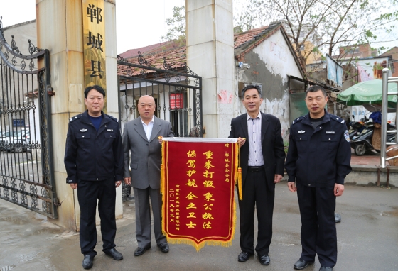 4月9日,南陽(yáng)市市場(chǎng)監(jiān)督管理局和臥龍壓力容器有限公司一行4人專(zhuān)程來(lái)到鄲城,向鄲城警方表示誠(chéng)摯的感謝,并將一面寫(xiě)有“重拳打假秉公執(zhí)法 保駕護(hù)航 企業(yè)衛(wèi)士”的錦旗送到鄲城縣公安局食藥環(huán)大隊(duì)民警手中。