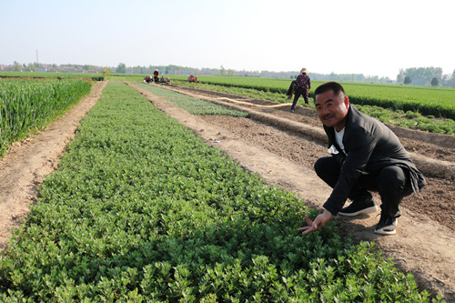 走近張辛行政村金絲皇菊種植基地,映入眼簾的是一片春意盎然的綠色,一株株金絲皇菊幼苗正村民的精心呵護下茁壯成長,為他們帶來了新的希望。高建民是宋河鎮(zhèn)張辛行政村的黨支部書記,同時也是全村率先深耕菊花深加工的能人。他說,菊花種植有賣苗、采集鮮花和深加工制售花茶多種贏利模式,現(xiàn)在正是各種菊花育苗銷售的季節(jié),行情好的時候,每株培育好的菊花幼苗可以賣到三四毛錢,經(jīng)過烘干的皇菊每公斤可以賣到300元左右,按每畝地產(chǎn)出150公斤干花算,就是4.5萬元,再加上賣幼苗的錢,每年每畝皇菊的毛利潤接近5萬元。