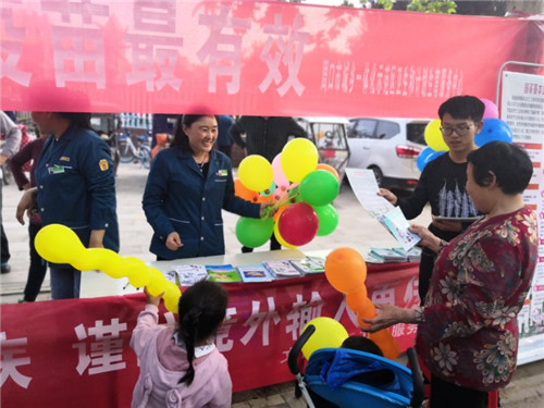 活動(dòng)現(xiàn)場(chǎng),工作人員向來(lái)往的行人、接送孩子的家長(zhǎng),發(fā)放了創(chuàng)建國(guó)家衛(wèi)生城市致廣大市民的一封信,宣傳預(yù)防接種、瘧疾的同時(shí),倡導(dǎo)創(chuàng)衛(wèi)工作從我做起。