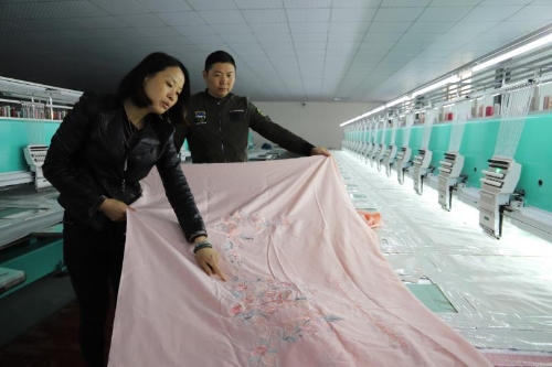 同時(shí),城郊鄉(xiāng)發(fā)揮基層黨員干部和在外創(chuàng)業(yè)成功人士的廣泛人脈資源和經(jīng)濟(jì)優(yōu)勢(shì),引導(dǎo)社會(huì)投資發(fā)展產(chǎn)業(yè)助力脫貧攻堅(jiān)。谷集行政村美紡科技有限公司就是典型個(gè)例。石永紅、石永華、石磊姐弟3人來(lái)自江蘇南通,他們盯上了城郊鄉(xiāng)的富余勞動(dòng)力,投資800萬(wàn)元建設(shè)了近2000平方米的紡繡車(chē)間,20臺(tái)國(guó)內(nèi)先進(jìn)設(shè)備可以利用全電腦操作繡出12種顏色的繡品。車(chē)間固定用工34人,其中建檔立卡貧困戶(hù)2人。只需要看著電腦控制臺(tái)、換布貼布、穿針引線(xiàn),每人每天工資便可達(dá)到150元。