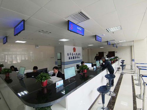 在西華縣人民法院訴訟服務(wù)中心,當(dāng)事人及社會公眾可通過訴訟服務(wù)智能系統(tǒng)的自助終端進行網(wǎng)上立案、案件查詢、訴訟引導(dǎo)、閱卷申請、聯(lián)系法官和查看法庭位置、開庭公告等信息,并可打印文書樣式。